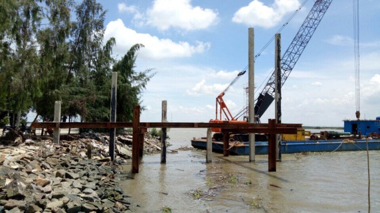 : Thi công đóng cọc kè gia cố bờ Trạm kiểm soát số 5 |